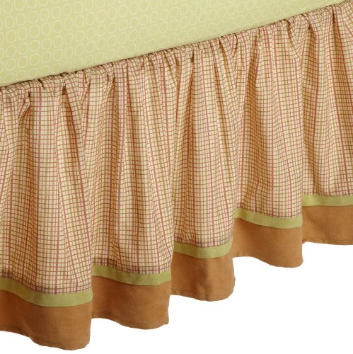 - The comforter measures 35" x 43.5"; The dust ruffle has a 14.5" drop, and the fitted sheet is designed to fit a standard size crib mattress