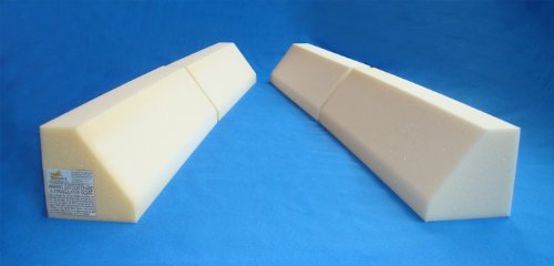 This set contains 4 light beige foam wedges each 5 inches wide and 5 inches high and 24 inches long. They are designed to be placed in pairs along both sides of a bed to make two 48 inch edge barriers.