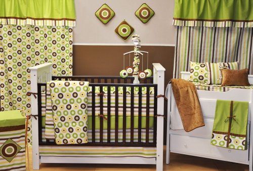 This Mod Dots/Stripes Green Chocolate Crib Bumper has Gr/Yel/Choc dots and stripes on either side of the bumper. Bumper measures 8.5" x 126" and is so comfortable and cushiony, it is a must have for your nursery. See the entire Bacati Mod Dots/Stripes Green Chocolate Collection for endless Mix N match possibilities.